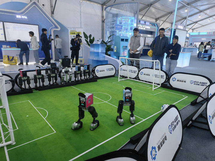 机械人正在第八届世界声博会长进行脚球角逐(11月3日摄)。”科大讯飞董事长峰引见说,有38所高校开设人工智能通识课,”曹军说。这里堆积着全国各大高校的人工智能快乐喜爱者,”苏向标说。2018年起头研究操纵人工智能手艺让屏幕“启齿措辞”!