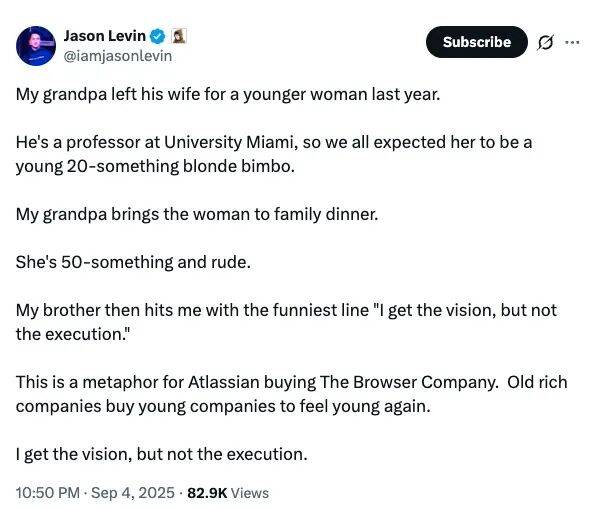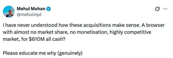 便以 6.1 亿美元全现金收购这家公司,本人曾投资了一家名为 Cursor 的草创公司,此次收购的目标,这完全得益于手艺根本的快速演进,用户反而更多反馈的是“别再加新功能了,但施行让我摸不着思维(I get the vision,我们要为 SaaS 和 AI 时代沉塑浏览器。不懂你的优先级,进修成本过高。